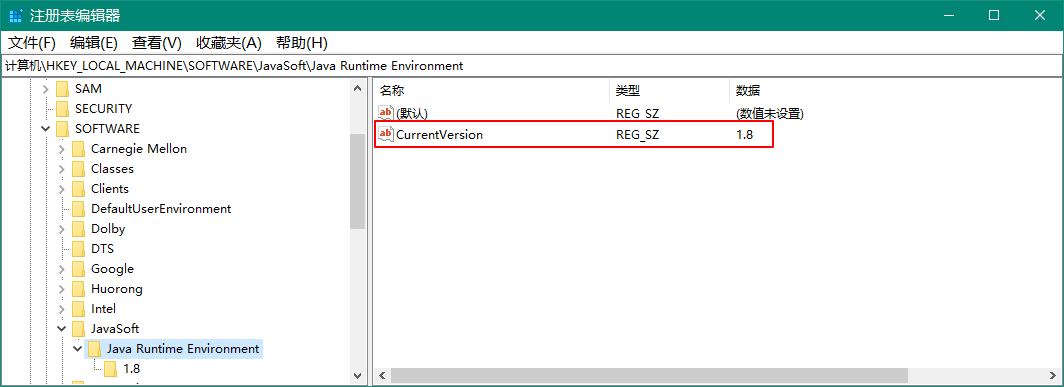 "CurrentVersion"="1.8"[HKEY_LOCAL_MACHINE\SOFTWARE\JavaSoft\Java Runtime Environment\1.8]