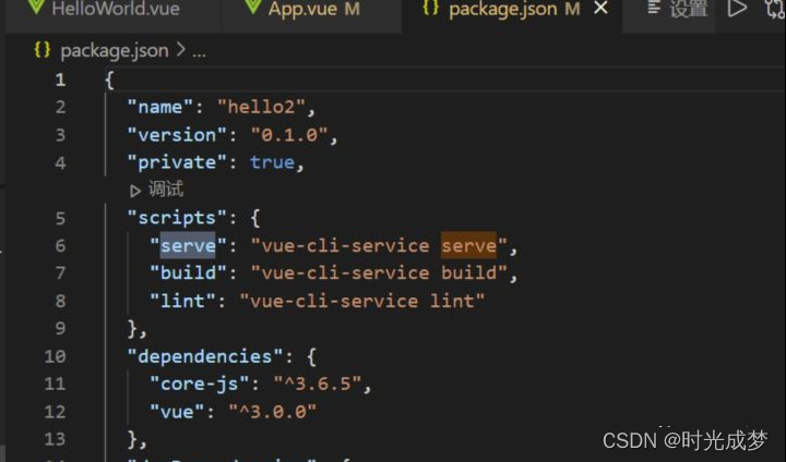 下图 启动vue项目需要用npm run serve (VUE3.x )