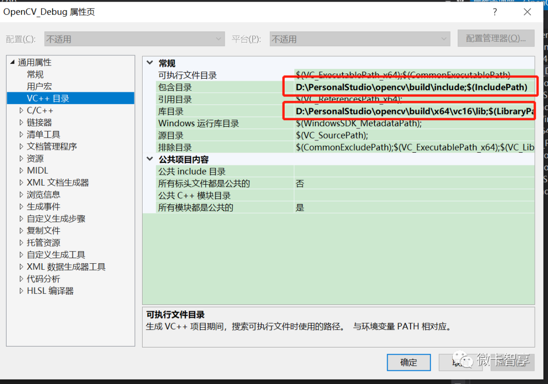 Debug和Relese的VC++目录还是编译后的OpenCV目录。