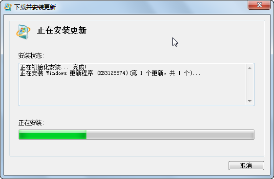 升级完SP1后,第二个补丁就能成功安装了。安装第二个补丁时,最开始很长时间进度条都为0,一定要耐心等待。