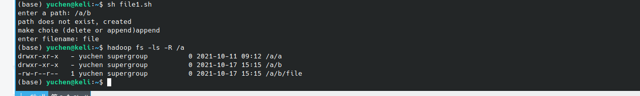 (一)编程实现以下功能,并利用Hadoop提供的Shell命令完成相同任务: