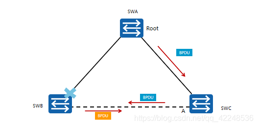 规则:网络收敛后,只有指定端口和根端口可以转发数据。其他端口为预备端口,被阻塞,不能转发数据,只能够从所连网段的指定交换机接收到BPDU报文,并以此来监视链路的状态。