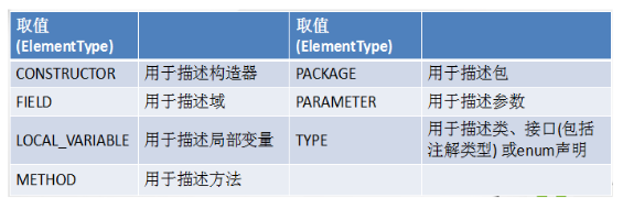 - ElementType.TYPE_USE 表示该注解能写在使用类型的任何语句中