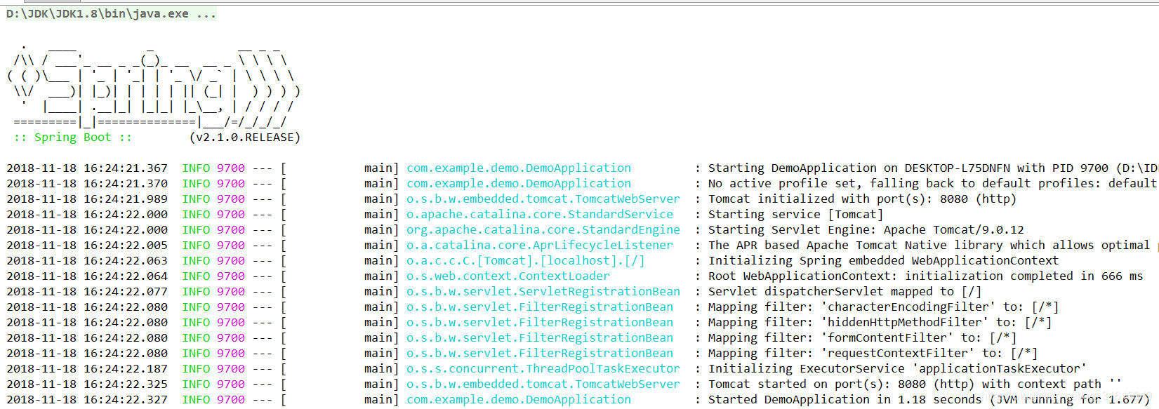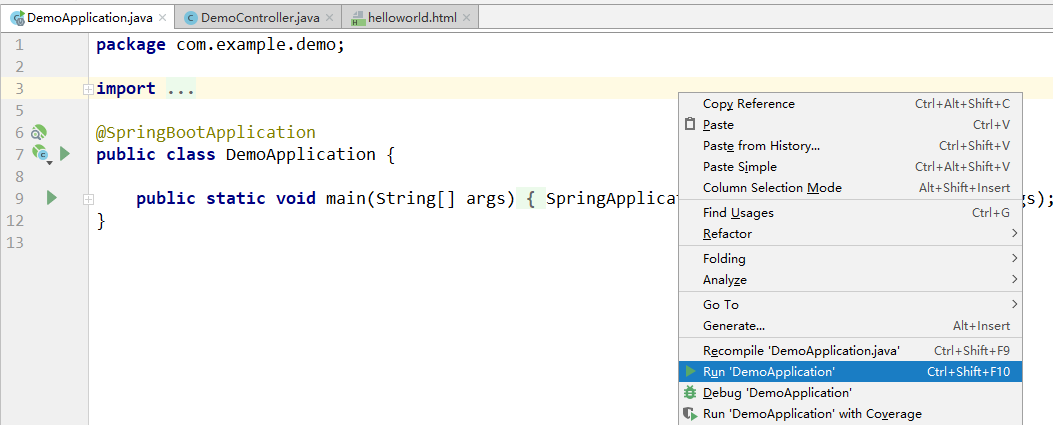 选择DemoApplication,右键点击run方法