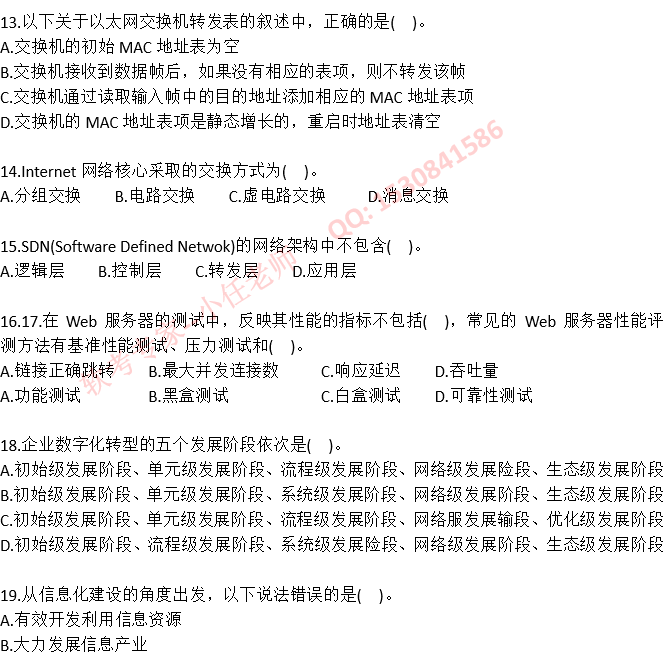 2021年下半年系统架构设计师上午真题答案及解析