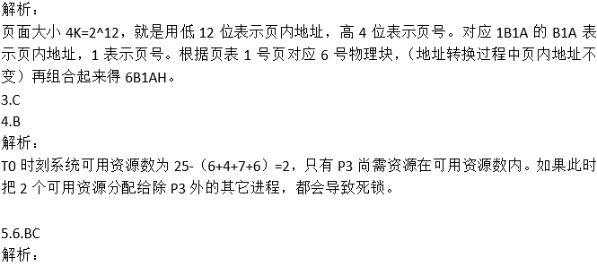 2.某计算机系统页面大小为4K,进程P1的页面变换表如下图所示,P1要访问数据的逻辑地址为十六进制1B1AH,那么该逻辑地址经过变换后,其对应的物理地址应为十六进制( )。