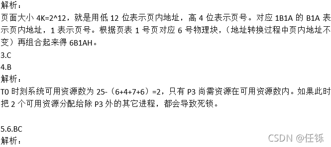 4.假设系统中互斥资源R的可用数为25。T0时刻进程P1、P2、p3、P4对资源R的最大需求数、已分配资源数和尚需资源数的情况如表A所示,若P1和P3分别申请资源R数为1和2,则系统( )。