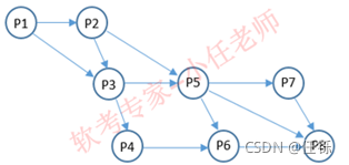 1.前趋图(Precedence Graph)是一个有向无环图,记为:→=(Pi,Pj)Pi must Complete Before Pj may strat), 假设系统中进程P={P1, P2,P3, P4, P5, P6, P7, P8}, 且进程的前驱图如下: