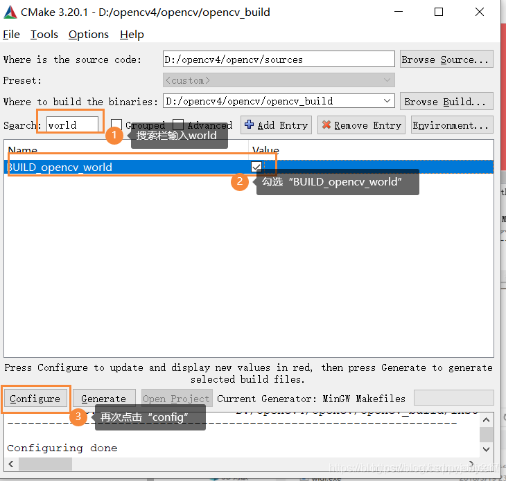 configure结束之后,没有错误之后,一定要Generate!!!!!!,不然想继续下面操作会报错: mingw32-make: *** No targets specified and no makefile found. Stop.