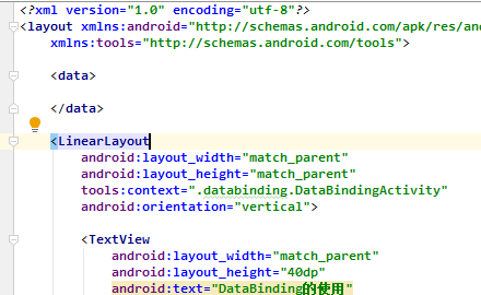 </data>然后为按钮设置点击事件android:onClick="@{activity.onClick}" 同时需要在Activity里提供这个onClick方法,同时需要初始化一下activity