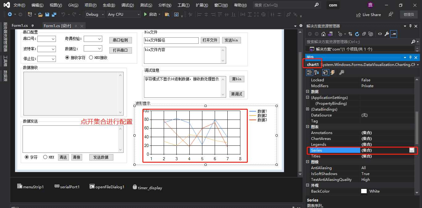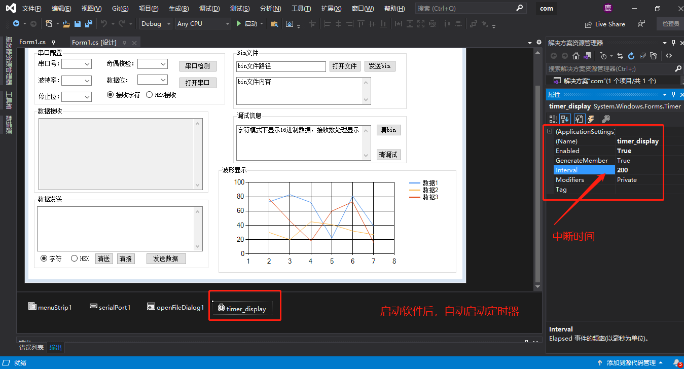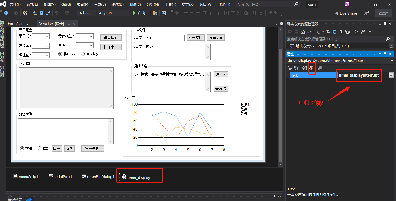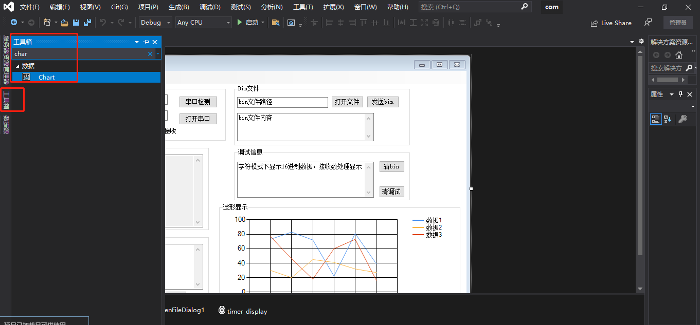 3、串口收到数据后传送到Chart显示控件;