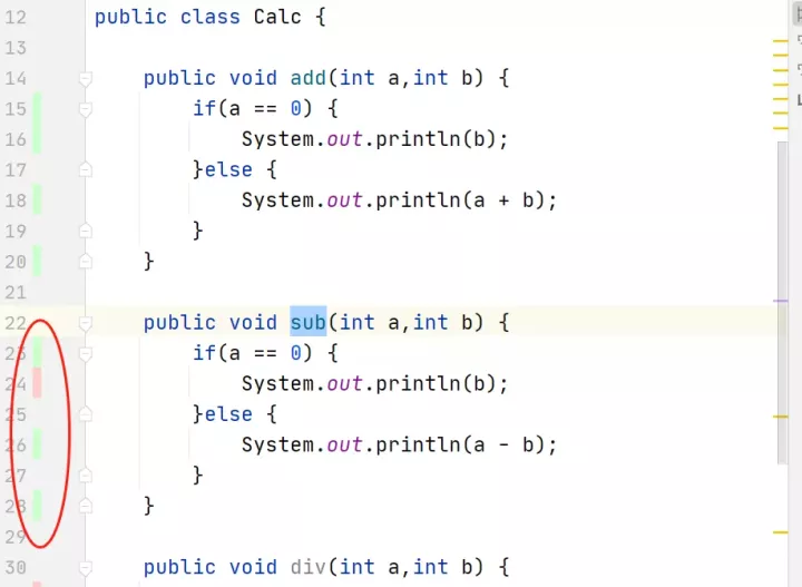 其次,sub 方法颜色也有变化,if 仍是红色, 但是 else 变成绿色,说明 eles 分支被覆盖。