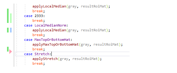 可以在VS中方便地查看当前版本的修改、删除、新增。点击左侧的提示,还可以看到修改前的代码。