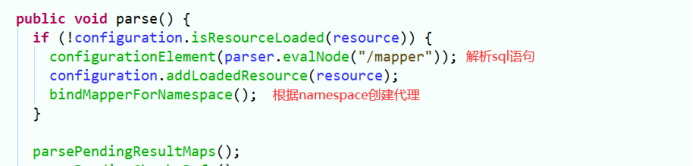 构建以 namespace+”.”+sqlId 为key、MappedStatement为value的map。存储在Configuration对象的mappedStatements中。