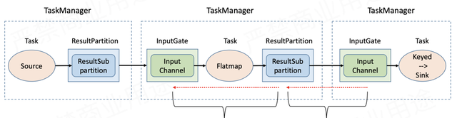 Flink 1.5+版本为了解决这两个问题,引入了基于Credit的流控和反压机制。它本质上是将TCP的流控机制从传输层提升到了应用层——即ResultPartition和InputGate的层级,从而避免在传输层造成阻塞。具体来讲: