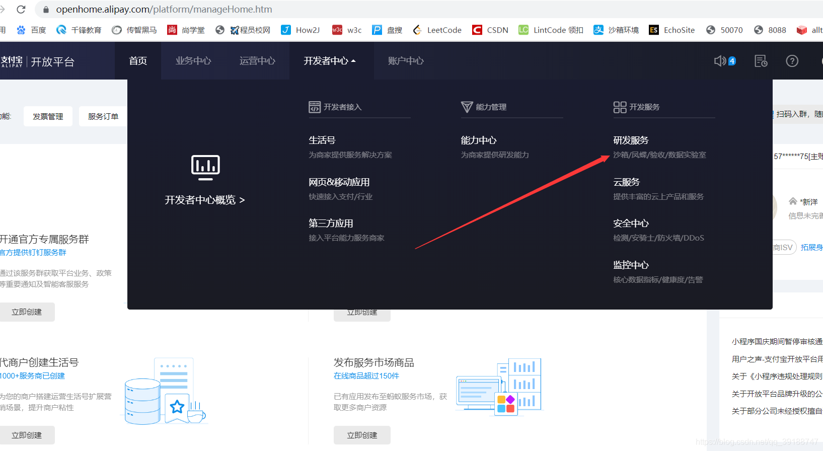3、支付宝扫一扫登陆支付宝官网,找到沙盒入口。