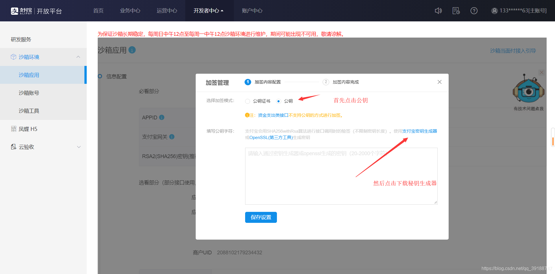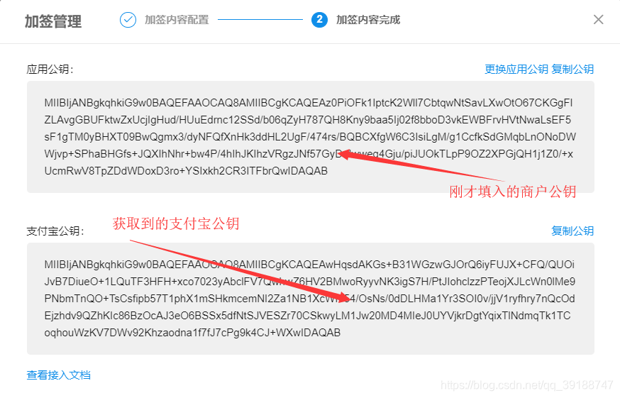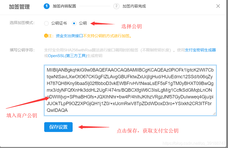 8、通过商户公钥获得支付宝公钥。保存支付宝公钥。