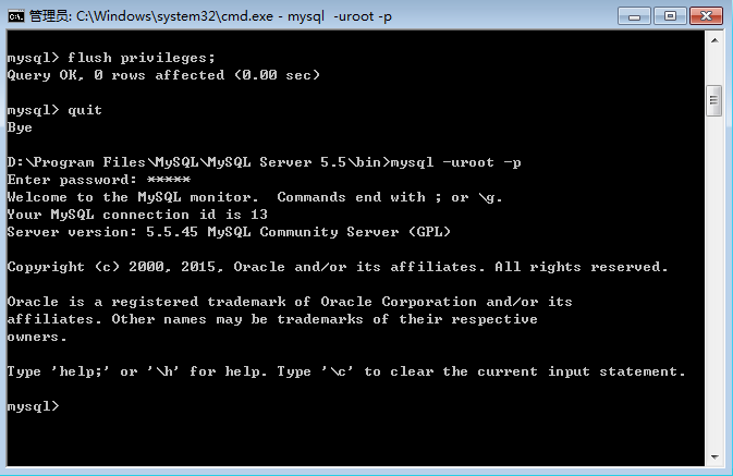 表示密码已经设置,但这时候密码还没有生效,还需要刷新一下权限(这一步也是关键的)