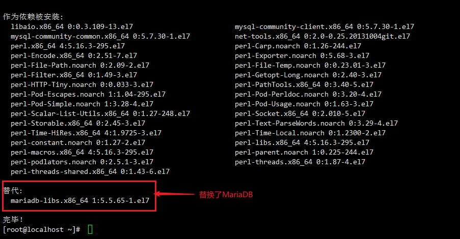 [4]、之后在线安装MySQL服务器:这里下载东西有点多,可能会下载很久(我网速快一下子就下载好了),耐心等待,安装完成后就会覆盖掉之前的mariadb。