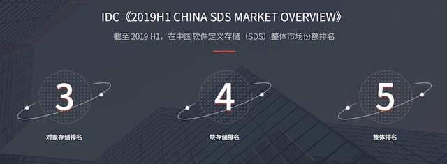 截至2019年H1,杉岩数据在IDC发布的《2019H1 China SDS Market Overview》报告中,对象存储排名第3,块存储排名第4,整体排名第5位。