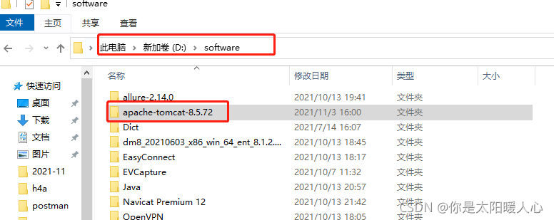 将下载好的Tomcat压缩包解压至你要存放的路径下即可