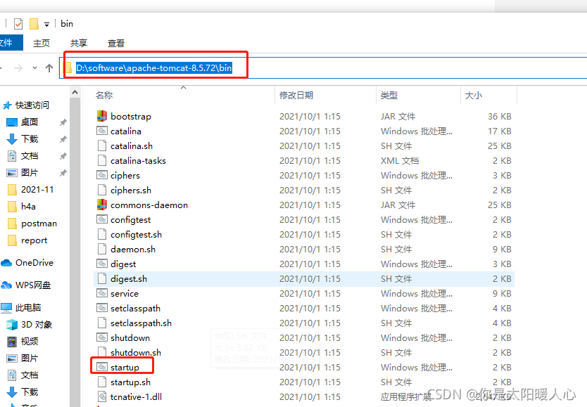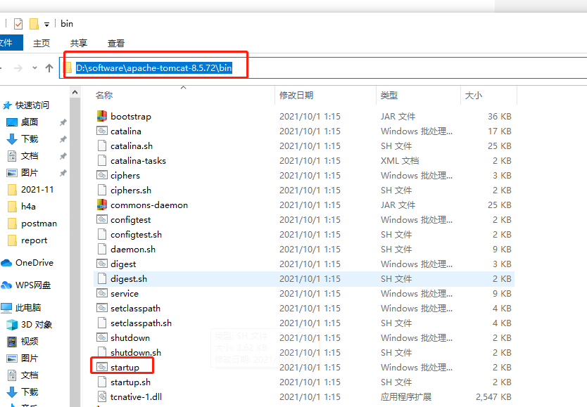验证启动tomcat:在tomcat\bin目录下找到starup,点击运行