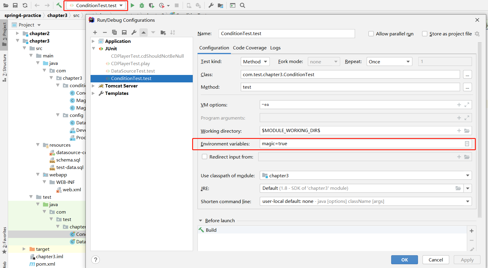 (6)在集成测试类上,使用@ActiveProfile注解设置
