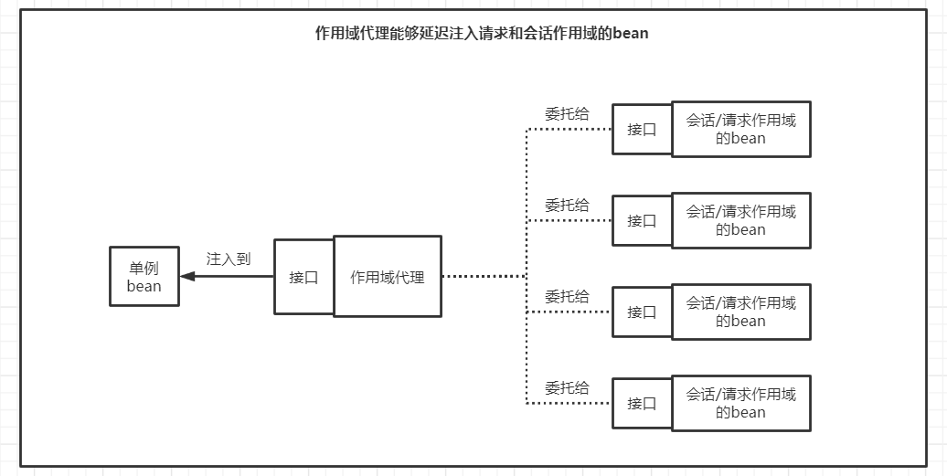 尽管我主要关注了会话作用域,但是请求作用域的bean会面临相同的装配问题。因此,请求作用域的bean应该也以作用域代理的方式进行注入。
