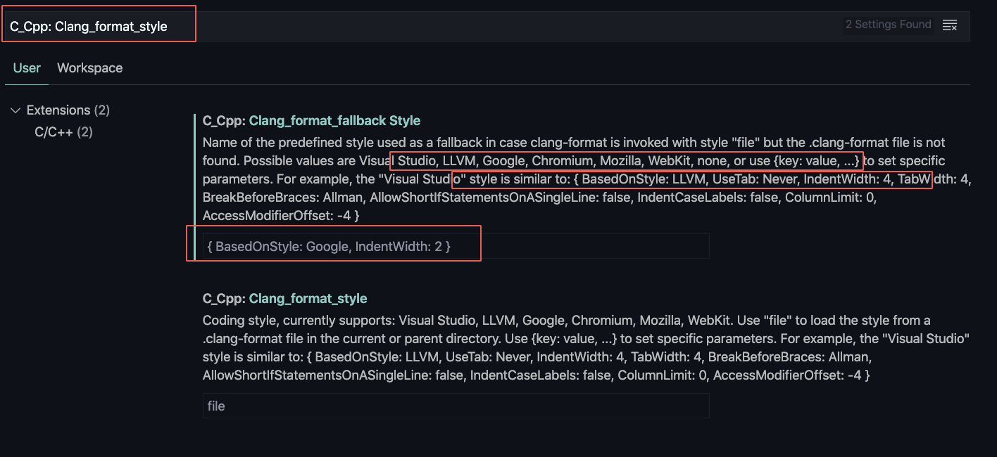 "editor.defaultFormatter": "ms-vscode.cpptools" //默认格式化工具