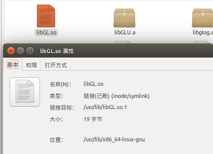 ls -l /usr/lib/x86_64-linux-gnu/libGL.so #ln -s 源文件 目标文件 省略源文件则链接到共享库(x-sharedlib)