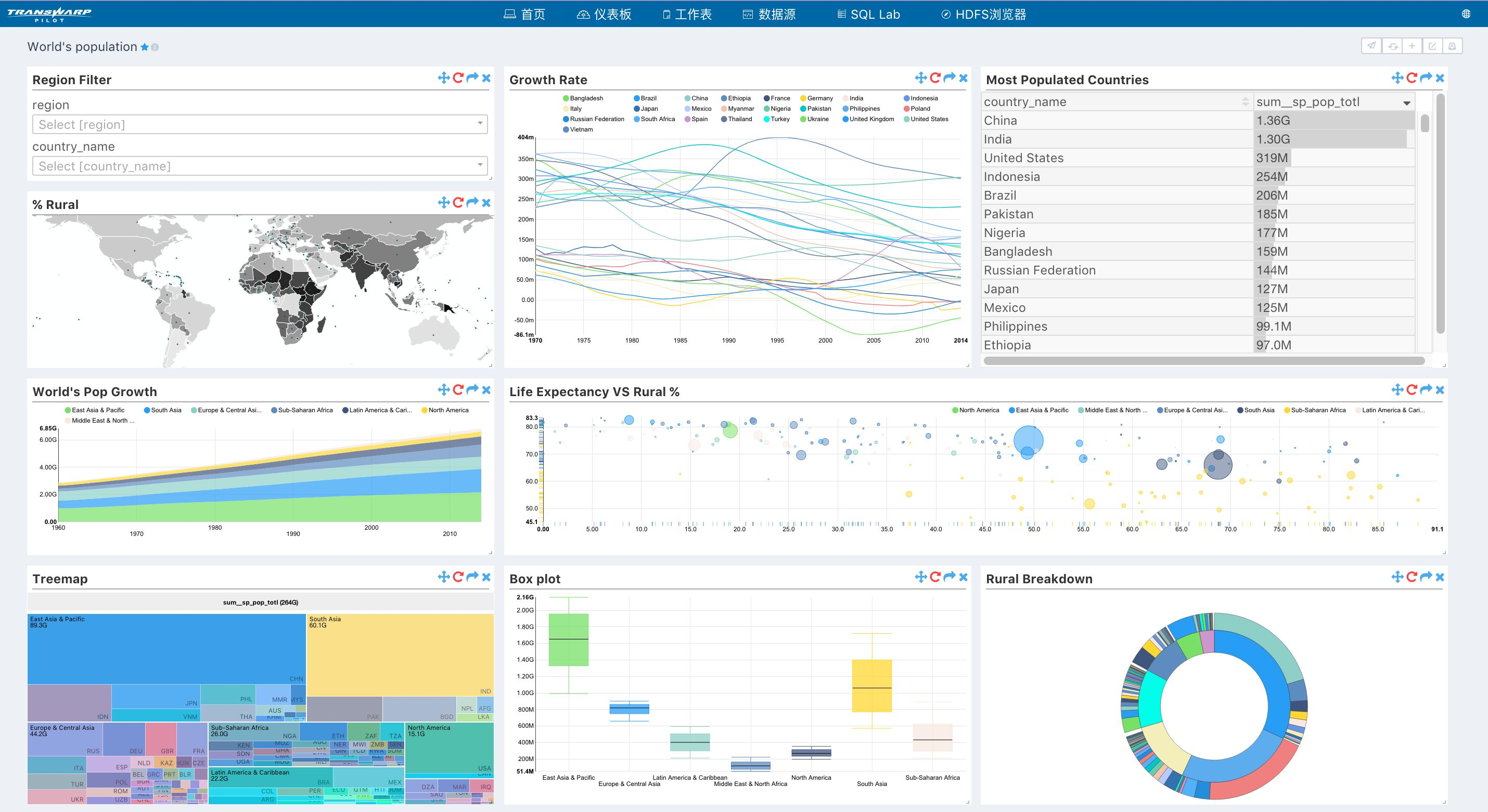 Transwarp Pilot是在5.1中新加入Transwarp Studio家庭的成员。作为轻量的自助式分析BI工具,Pilot克服了传统BI工具的缺陷,提供智能的分析体验,不论是对于可视化报表展现的丰富度,还是对于处理性能,都有极致的表现。