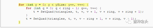 要对所有环进行三角化,再次简单地沿着Y重复这个过程。注意,在每个环之后,需要增加顶点索引,因为我们的环环要短一步。