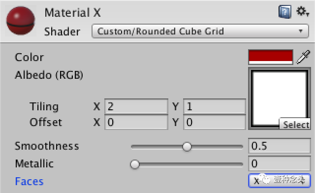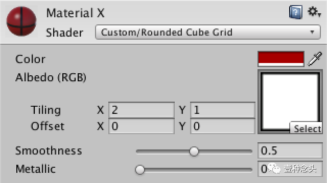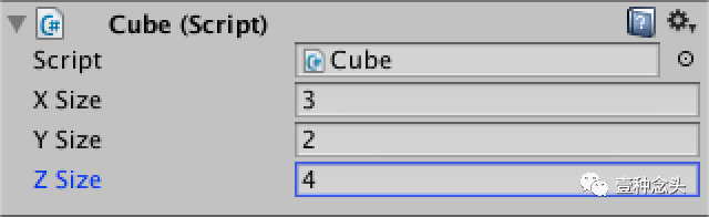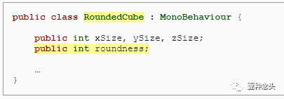 真正的立方体不会总是那么四方四正的。那么现在我们就入活本篇的主题,圆角立方体。把刚才的类重命名一下 ,改为RoundedCube。Unity会自动追踪到你改名的脚本,但如果没有追踪到的话,你只需要把脚本重新拖拽到刚才的gameobject上即可。