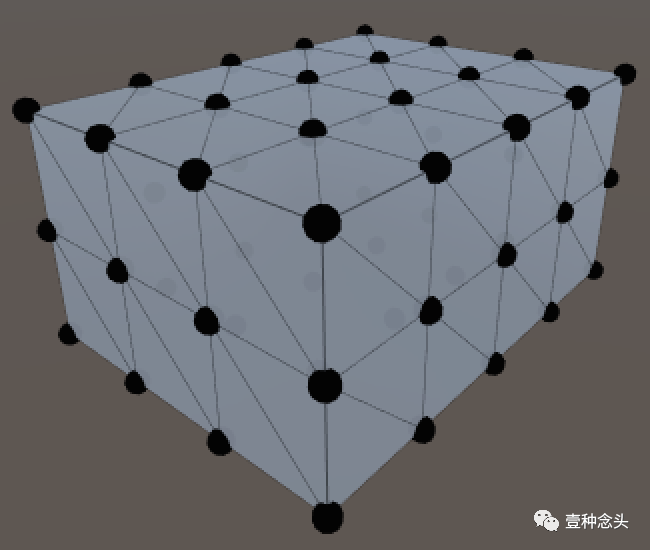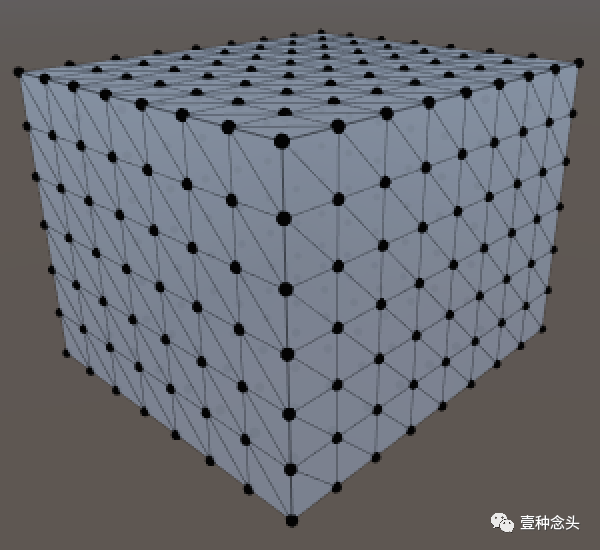 但这其实并不正确。因为当不同的表面彼此接触的时候,会有一些顶点重合,这就会导致多余的顶点出现。这样的结果就是立方体的每个角点都是三倍的,而沿着它的边的所有顶点都是双倍的。