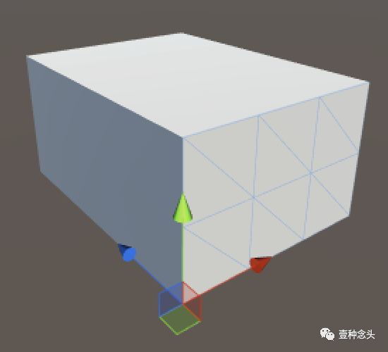 为什么只会显示两个面呢?这是因为网格现在被切割成三个部分了,而材质球只有1个,所以实际只有第一个被渲染了。要看到全部效果,必须为mesh renderer分配额外的材质球,每个子网格都要一个。这就是为什么会有一个物材质球的数组的原因。