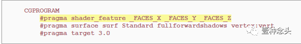 这个表现对Z面来说是合理的,但其他的则是非常糟糕。所以我们需要根据不同的面来使用不同的顶点坐标。可以通过添加关键字枚举着色器属性来支持这个选择。