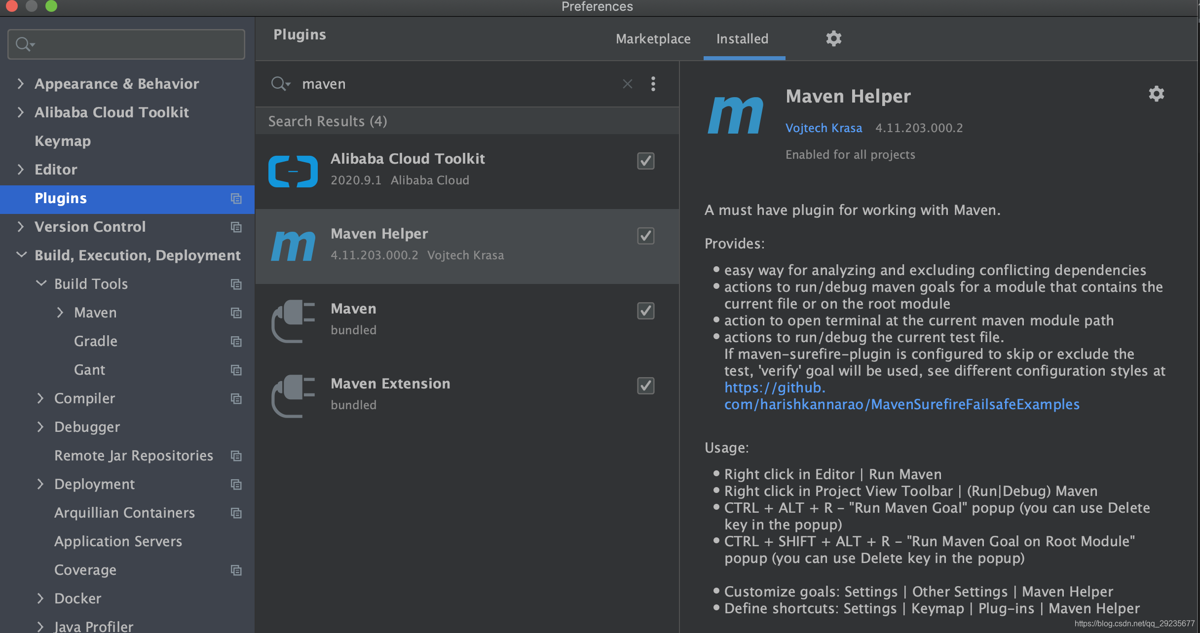这里使用的工具是idea的插件--maven hepler 安装方式与其他插件的方法相同,这里不在赘述。
