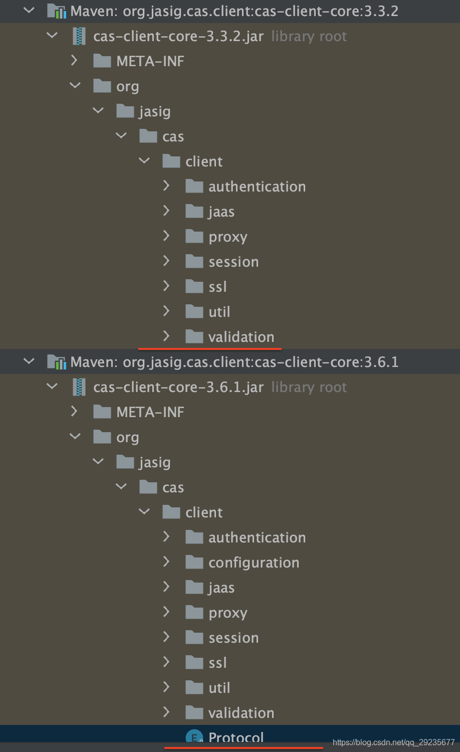 还找不到是为什么,,,因为项目已经引入了统一的三方包和二方包的管理,应该不会有问题了???嗯肯定是jar包冲突了。点击当前Protocol类所在的位置,