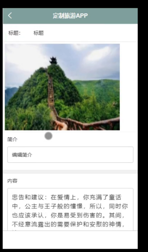 含文档+PPT+源码等]精品基于Uniapp+SSM实现的定制旅游APP[包运行成功]》该项目含有源码、文档、PPT、配套开发软件、软件安装教程、项目发布教程等