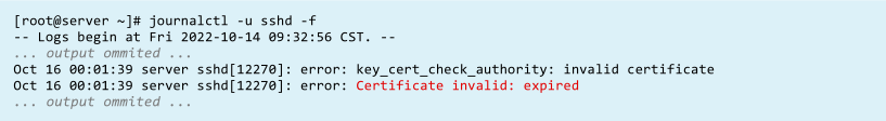 服务器: 再次查看日志; 会显示公钥已经过期; 实验结束