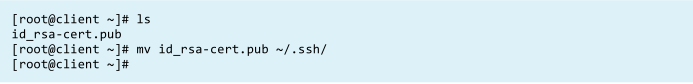 客户端: 收到签名的公钥后,将其移动到 ~/.ssh/ 目录下