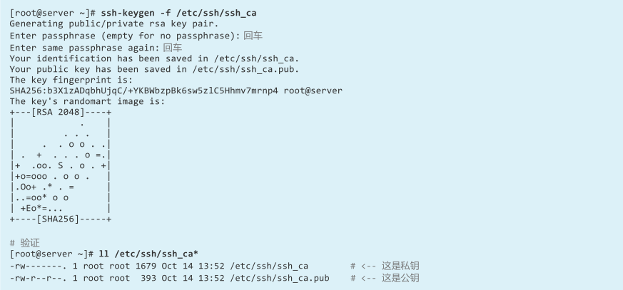 服务器: 生成 SSH 的非对称密钥,并将密钥放置于 /etc/ssh 目录中,该密钥的作用是: 用于对客户端的公钥进行签名