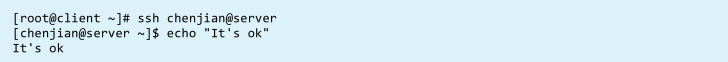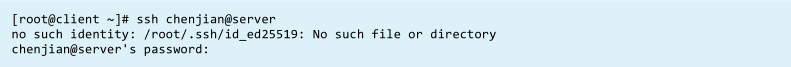 服务器: 由于签名的证书限定了使用 "chenjian" 用户进行免密登录,所以系统上要存在该用户,否则客户端将无法登录; 使用 adduser 命令创建一个普通用户