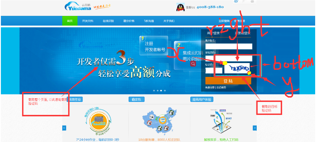 左上(x)右下(y), 图片两点确定之后在把长宽加上, 验证码图片就截取出来了