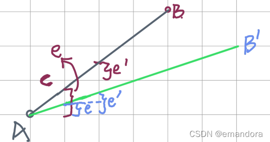 (1)假设计算当前e后选择(xpos+1, ypos),那么下一步误差e‘=e+▲y/▲x。(如上图蓝色线)误差增量deta1=▲y/▲x。