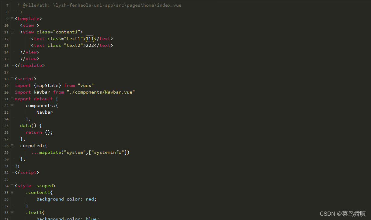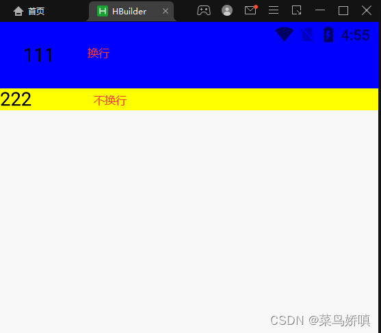 view里面包含两个text标签宽度占满一行而不是由内容111和222撑开