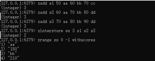 zinterstore destination numberkeys key1 key2 key3 ...[aggregate min|max]