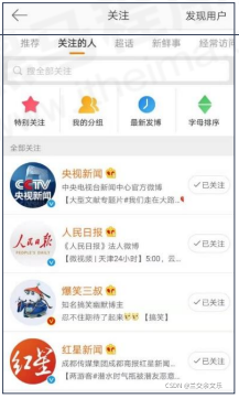 Twitter、微博中个人用户的关注列表需要按照用户的关注顺序进行展示,粉丝列表需要将最新关注的粉丝列在前面