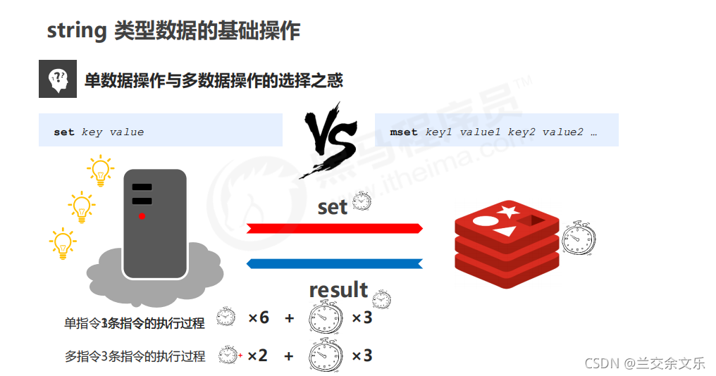 同样是存储三条数据,使用set的话,发送消息和接收反馈消息的时间是要比mset耗时