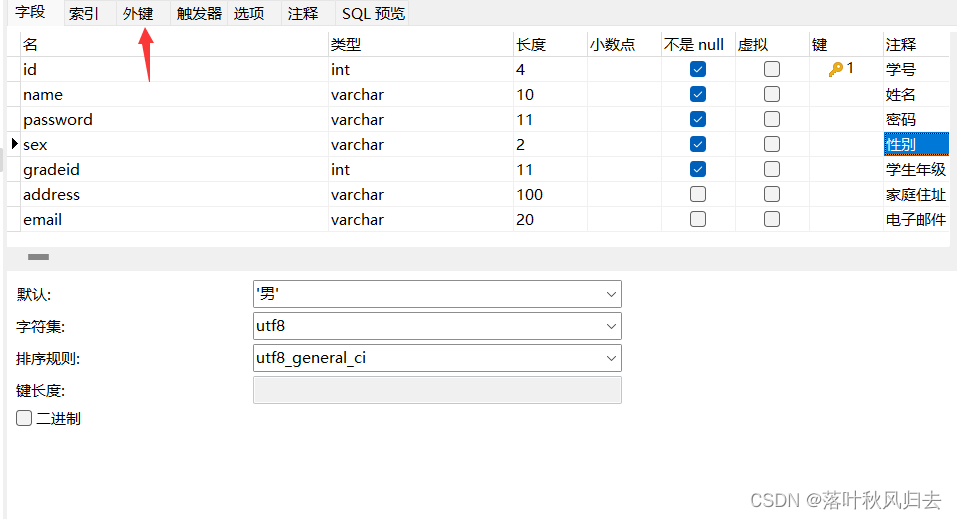 `gradeid` int(11) NOT NULL COMMENT '学生年级',